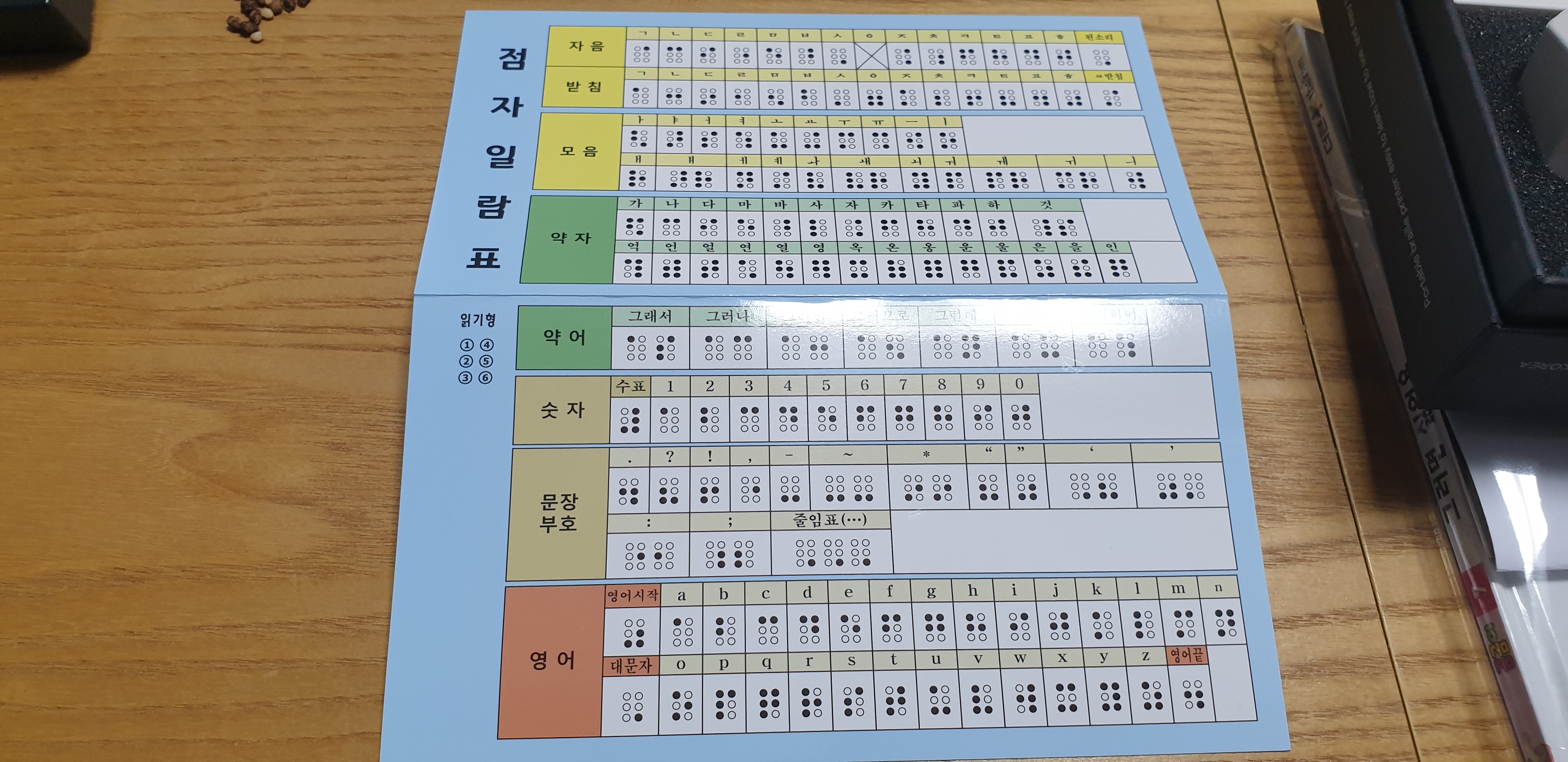 미리 점자표의 각 행에 번호를 적어 두면 나중에 인쇄된 점자필름을 책에 붙이기 편하다.