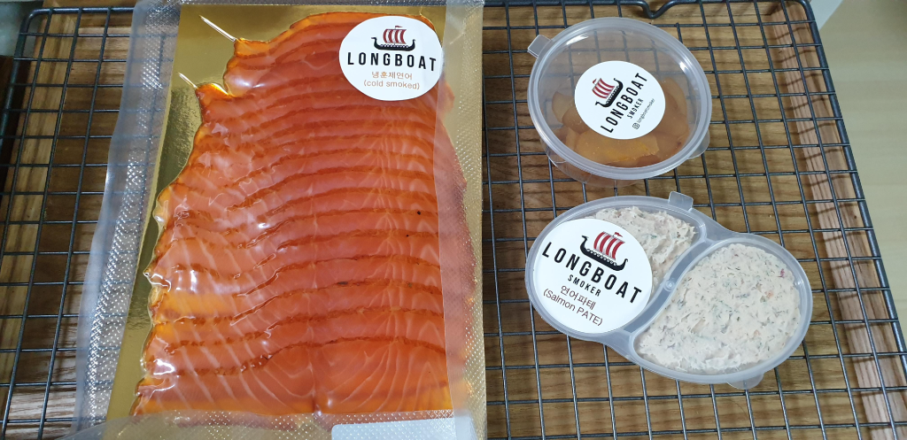 노르웨이 국기와 바이킹식 범선이 그려진 로고로 장식되어 있는 이 투박하면서도 힙한 가게의 이름은 '롱보트 스모커'다. 호기심이 동해 네이버 지도에서 리뷰를 몇 개 찾아봤는데, 더더욱 놀랍게도 그 아이돌 전소미 씨의 부모님이 운영하는 가게란다. 전소미 씨의 아버지가 노르웨이 혈통의 네덜란드계 캐나다인인데, 자식들에게 훈제 연어를 만들어 주던 경험을 살려 창업한 가게라고. 리뷰가 무척 호의적으로 쓰여 있기에, 궁금해서 들어가 보기로 했다.