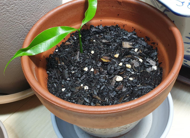 마트에서 사 온 망고 두 개를 먹고 화분에 심었는데,