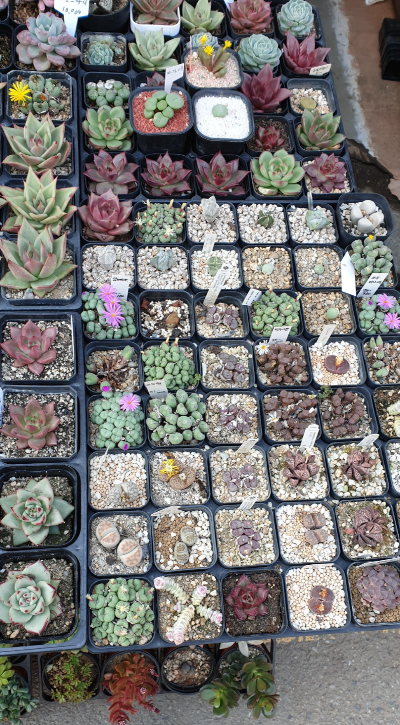 뭐니뭐니해도 종로꽃시장의 가장 큰 특징은 '다육식물의 종류와 크기가 다양하다'는 것이었다. 도대체 뭘 어떻게 해야 이렇게 크고 예쁘게 키울 수 있는 건지 궁금해지는 크고 아름다운 다육식물을 주루룩 늘어놓고 파는 분들도 계셨고, 작지만 다양하게 품종들을 준비해 놓고 팔고 있는 분들도 계셨다. 양재꽃시장에서는 아무리 찾아봐도 없었던 코노피튬 칼쿨루스 같은 친구들이 여기는 제법 여러 개, 아무렇지도 않게 놓여 있기도 했고. 기본적으로 양재동에는 뭔가 없는 식물이 있으면 '주로 봄철에 들어오기 때문에 지금은 없다'는 안내를 받는 경우가 많았는데, 여기는 순환이 빨리 잘 되는 것인지 아니면 순환이 안 되는 것인지, 양재동을 비롯해서 어디를 가도 봄에나 되어야 나온다던 붉은 사루비아 종자 같은 것도 아무렇지도 않게 팔리고 있었다.