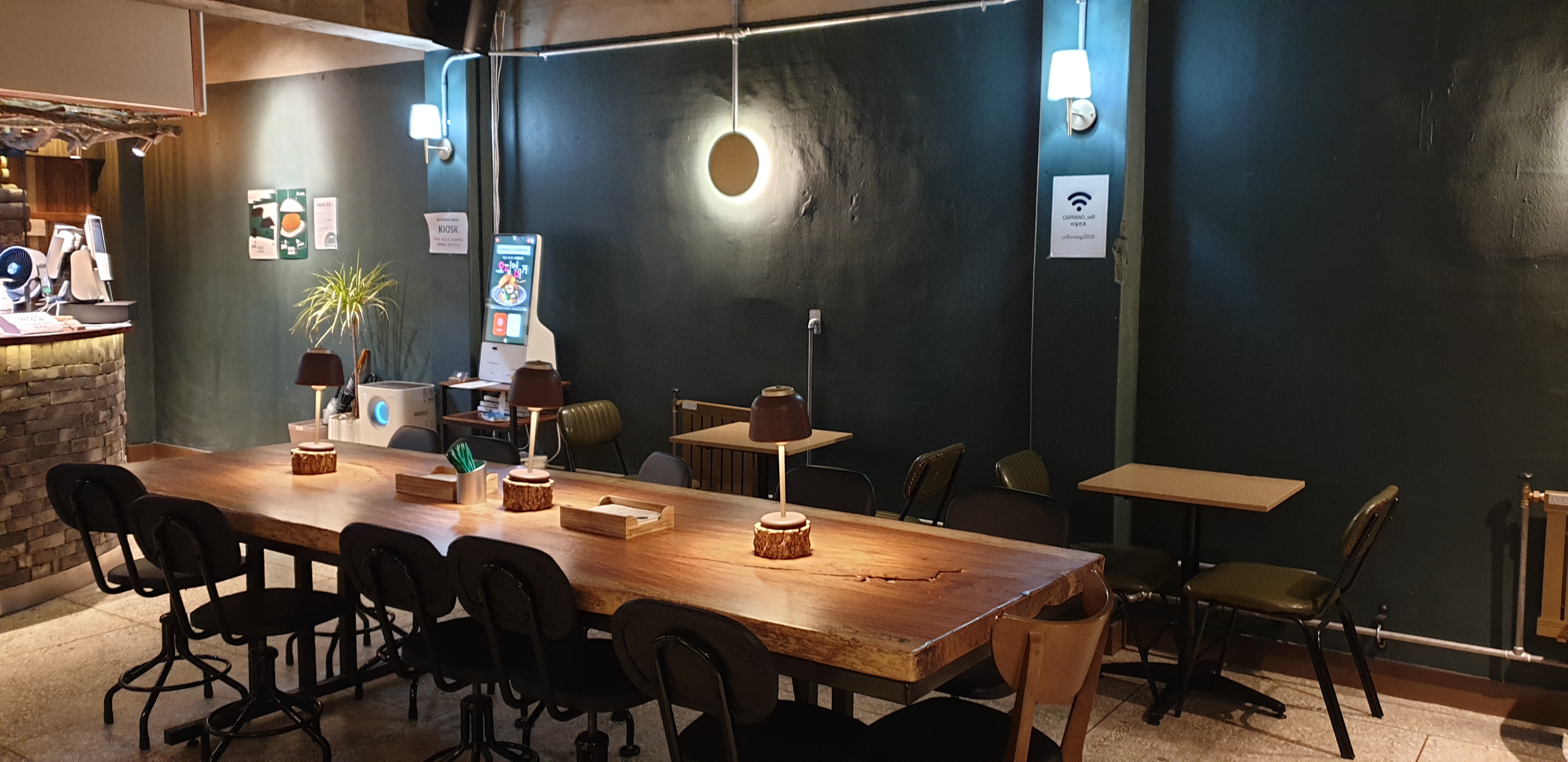 지도 앱을 보아하니 강남구 한복판의 주택가여서 백현동 카페거리 같은 곳인가? 라고 생각했는데, 의외로 그냥 오래 된 강남 주택가 한복판의 상가 건물 지하에 위치한 가게였다. 근처에 주차하기는 마땅한 곳이 없으니, 아예 근방에 있는 영희초등학교 공영주차장을 이용하는 것이 나아 보였다(실제로 우리도 그렇게 했다). 별다를 것 없는 적벽돌 상가 건물 지하로 내려가니 갑자기 앤티크해 보이는 장식장(?)과 그 옆으로 나 있는 목조 문이 눈에 들어온다. 안으로 들어가면 퍽 모던한 느낌으로 꾸며 놓은 가게가 나타난다.