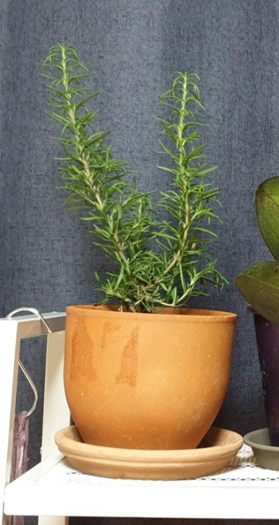 씨앗으로 심은 로즈마리는 놀랍게도 퍽 무럭무럭 자라 주고 있다. 지금은 어린싹 세 개가 한 화분에서 자라고 있다. 화분이 바싹 말랐다 싶을 때쯤 관수해 주는 정석적인 방법을 따라 키우고 있기 때문인가도 싶다. 로즈마리는 건조한 기후에서 잘 자라는 식물이기 때문이다. 외목대로 크게 키워내려면 무척 오랜 시간이 걸리겠지만 이것만 해도 어딘가.
