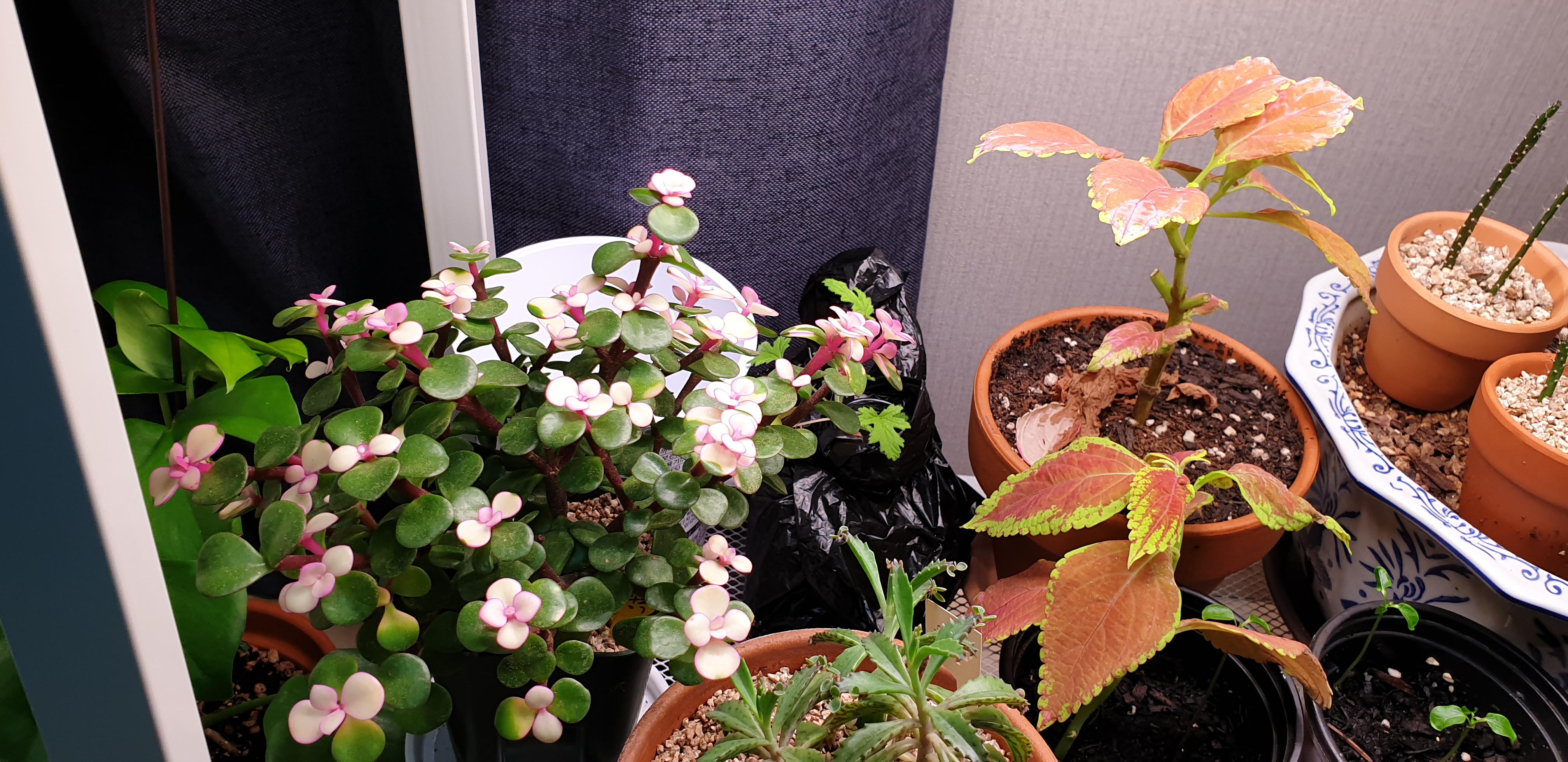 콜레우스는 당근마켓에서 들어왔다. 색이 너무 예뻐서 한번 키워 보고 싶었는데, 식물등을 달다가 줄기가 떨어져서(포인세티아 시즌 투) 부득이하게 줄기를 좀 정리해 꺾꽂이해 두었다. 사랑목(아악무)과 서양골담초(애니시다)는 생전 처음으로 인터넷에서 주문해 본 식물들인데, 생각했던 것보다 잘 포장돼 와서 그래도 다행이라고 생각했다. 둘 다 아내의 취향이라 더 잘 키워 보고 싶은 마음이 강하다. 죽이지 않고 예쁘게 잘 돌보도록 해야겠다.