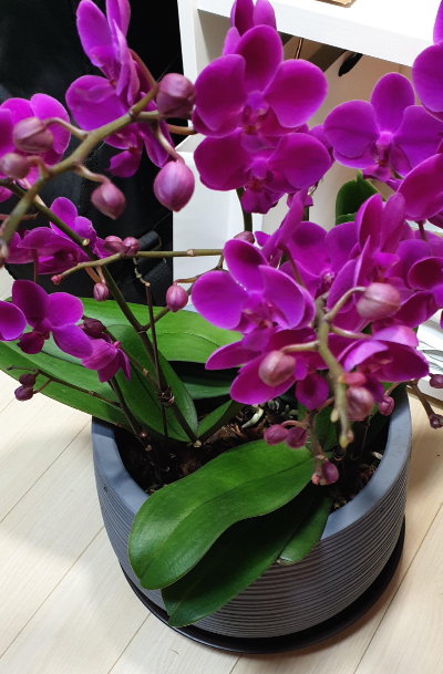 지인의 개인전에 찾아갔다가 축하화환 몇 개를 얻어왔다. 너무 많은 개수가 들어와서 처치곤란이라는 말씀과 함께 안겨 주시는데 차마 거절할 수가 없었다. 집에 들고 와서 며칠을 내버려 뒀다가 종류별로 나눠 심기로 했다. 호접란은 호접란대로 바크와 하이드로볼에 식재해 주었고, 스파티필름과 홍콩야자는 일단 한 화분에 합식. 호야는 토분에 심어 스킨답서스 옆, 거실 책장 위에 얹어 주었고, 겨울을 잘 나는 남천은 따로 화분에 담아 실외에 내놓았다. 어쩌다 얼렁뚱땅 우리 집에 온 친구들이지만, 오랫동안 잘 살도록 케어해 주려고 한다.