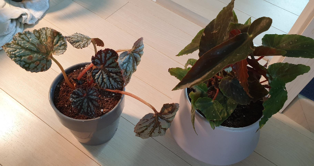 사실 베고니아는 어렵다는 이미지가 있어서 지금껏 섣불리 엄두가 나지 않았다. 그러나 서울식물원에서 만난 어텀 엠버(autumn ember, '가을의 잉걸불'이라는 이름이다)에 홀딱 반한 아내 덕분에 처음으로 베고니아를 들이게 된 후, 그 아름답고 다채로운 모양새에 반해 쫌쫌따리로 사들이기 시작했다. 당근마켓에서 사들인 은베고니아와 목베고니아를 비롯해, 조인폴리아에서 한눈에 반해 사온 '마틴즈 미스테리' 품종까지. 가을 느낌과 불꽃의 느낌이 한번에 나는 어텀 엠버는 물론이거니와, 은분홍색 바탕에 자르르르 반짝이는 펄이 깔린 마틴즈 미스테리는 지금 아내의 최애 식물들 중 하나이다. 퇴근하고 집에 들어오면 한참을 베고니아 앞에 앉아서 그 아름다움을 감상하는 것이 최근의 일과일 정도이다. 나는 그렇다 치더라도 아내가 이렇게까지 좋아해 줄 줄은 미처 몰랐어서 은근히 기쁘다.