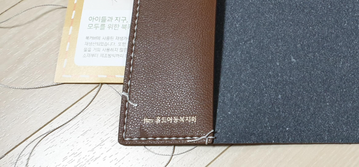 홀트아동복지회에서 배포하고 있는 북커버 만들기 키트. 재단되어 있는 가죽을 가지고 책을 끼울 수 있는 북커버를 만들어 복지회로 다시 보내는 형태란다. 재사용을 전제로 하고 있는 비닐봉투를 열어 보면 갈색 종이봉투가 하나 더 나오고, 그 안에 북커버 만들기 키트가 들어 있다. 아동학대 피해를 받은 아이들을 지원하기 위한 키트라는데, 이 북커버가 실제로 아이들에게 전달되는 형태의 사회공헌인지, 아니면 이렇게 만들어진 북커버를 판매해서 그 수익금으로 아이들을 지원하는 형태의 사회공헌인지는 잘 모르겠다. 설명서를 항상 잘 읽어야 한다지만 그걸 늘 잘 못 한다.